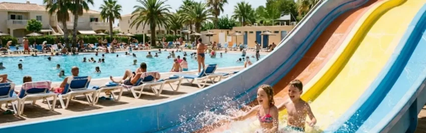 Si hay algo que levanta el ánimo a cualquier niño (y a muchos adultos), es un buen parque acuático. Busca campings con toboganes de vértigo, piscinas infantiles con chorros y figuras divertidas, e incluso piscinas climatizadas para los días menos cálidos. Muchos resorts en España, como La Marina Camping & Resort en Alicante o los espectaculares Alannia Guardamar y Alannia Costa Blanca, se transforman en auténticos parques temáticos del agua, con lagos artificiales, cascadas y